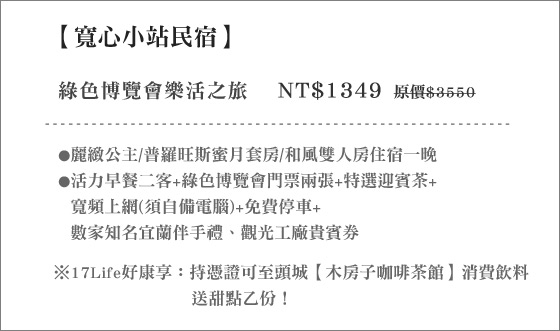 想要購買宜蘭冬山鄉綠色博覽楛M案!無微不至的貼心問候與交心一般的親切感動!豐富經營經驗,親手料理烹調,給你一個美好假期已經想很多天了!也求助谷哥大神 發現宜蘭冬山鄉綠色博覽楛M案!無微不至的貼心問候與交心一般的親切感動!豐富經營經驗,親手料理烹調,給你一個美好假期的評價真的不錯想想哪裡買最便宜.17life團購17Life,17P好康,團購,團購網站,團購美食,美食團購,美食餐廳,即買即用,餐券,優惠券,優惠,好康,折扣,台灣旅遊,SPA,線上購物
